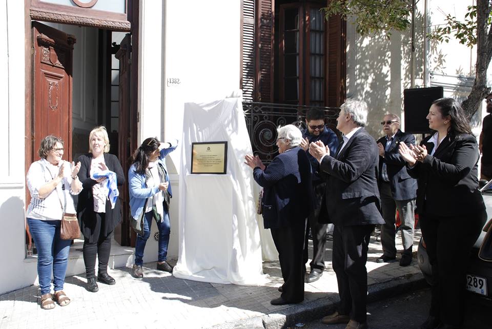 Aquí funcionó la “CASA DEL LIBERADO” fundada por Elisa Delle Piane, donde ella brindó apoyo y contención a los ex-presos de la última dictadura cívico-militar (1973-1985) y a sus familias. Homenaje de la Junta Departamental de Montevideo”.